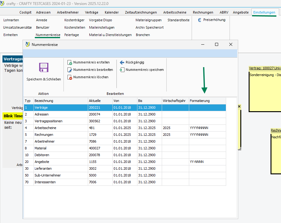Man kann auch führende Nummern (z.B. 7NNNNN) über die Formatierung steuern oder die laufende Nummer vor einer festen Zahl (z.B. NNN7YYMM) einbinden.