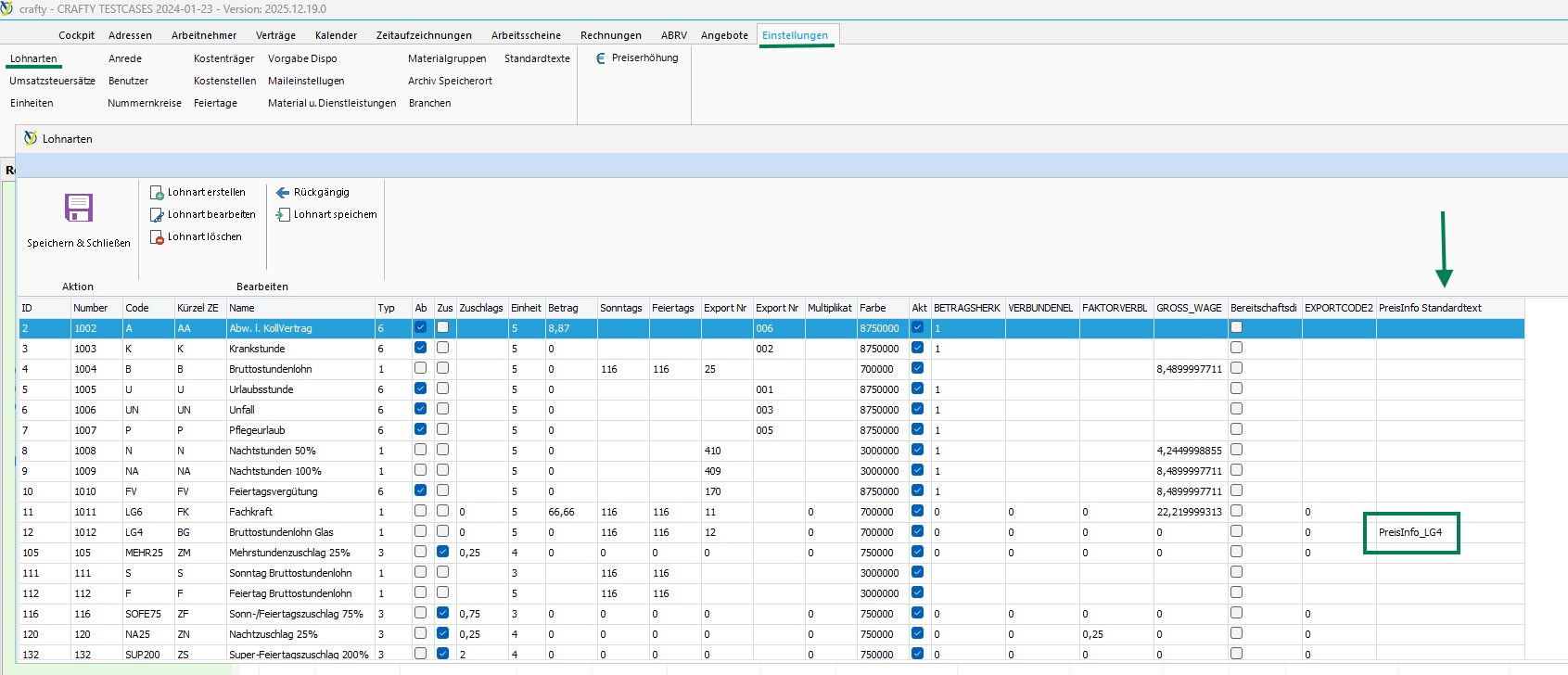 Für alle Lohnarten die keinen abweichenden Standardtext hinterlegt haben wird die Info aus PreisInfo übernommen.
