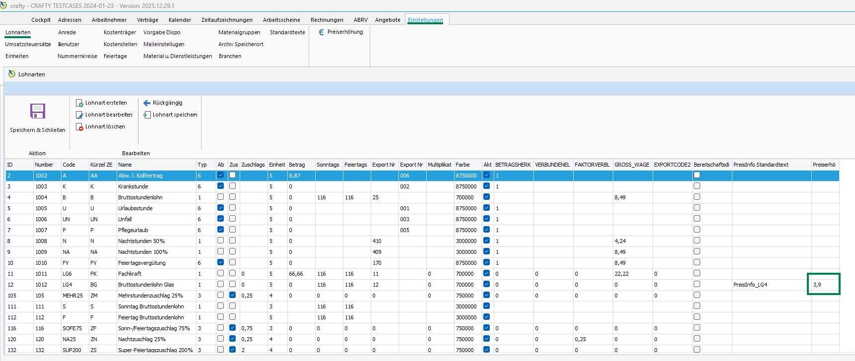 In den Lohnart-Einstellungen kann man jetzt in einer neuen Spalte den höheren Prozentsatz hinterlegen: